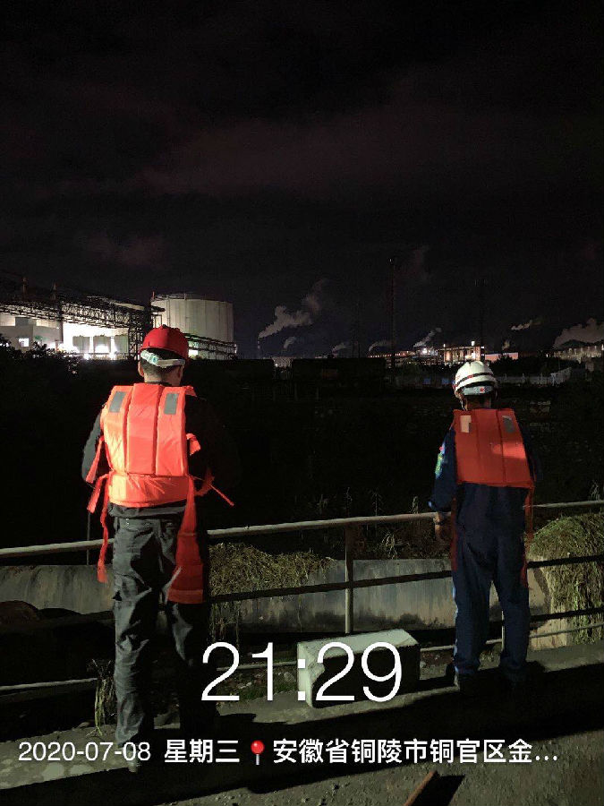 7月6日,銅陵市出現強降雨天氣,以141.99毫米的降水量排名全國第一,下午4時左右,位于金隆銅業(yè)公司3#門外的市政狼尾湖泵站出現險情,泵站故障停運,狼尾湖水位迅速上升并經過3#門往廠區(qū)倒灌,接到預警后,金隆公司防指立即啟動應急機制,組織開展搶險。期間倒灌水位最深達到1.3米左右,涉水區(qū)域責任單位積極組織開展巡檢排查,重點部位采取有效的封堵,確保了安全生產。至凌晨3時左右,市政泵站逐步恢復運行,水位下降,險情解除。