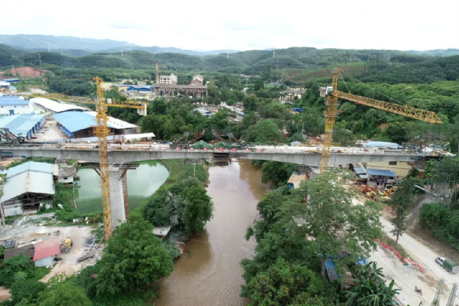 據悉,中老鐵路在老撾北部古城瑯勃拉邦以北兩次跨越湄公河,其中,瑯勃拉邦湄公河特大橋連續梁于2019年7月28日成功合龍,于今年4月23日完成架梁施工;班納漢湄公河特大橋于今年4月1日合龍。
