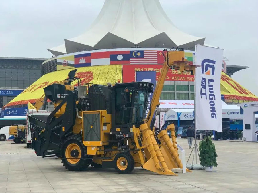 東博會上,柳工除了展出裝載機、挖掘機、叉車、柳工路機20周年特殊涂裝紀念款的壓路機等設(shè)備外,柳工新上市的2款甘蔗收獲機和新品拖拉機首次在東博會亮相,吸引了眾多嘉賓的目光。