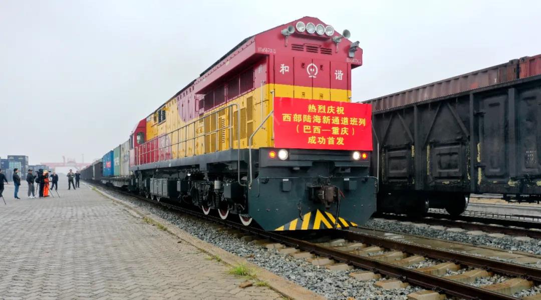 近日,欽州港鐵路集裝箱中心站,裝載著來自巴西的40個集裝箱漿紙搭乘西部陸海新通道班列始發(fā)重慶。