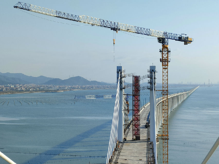 湄洲灣跨海大橋長14.7公里,海域施工長10.8公里,主橋為預應力混凝土連續(xù)剛構(gòu)矮塔斜拉橋,主跨180米,跨越湄洲灣規(guī)劃3000噸級航道,設(shè)南北兩座雙柱式主塔,橋面以上塔高30米,共有28根斜拉索,施工精度高、技術(shù)難度大,是國內(nèi)首座跨海高鐵矮塔斜拉橋。該橋除連續(xù)梁外全部采用40.6米箱梁設(shè)計,是福廈高鐵唯一一座40.6米箱梁橋。