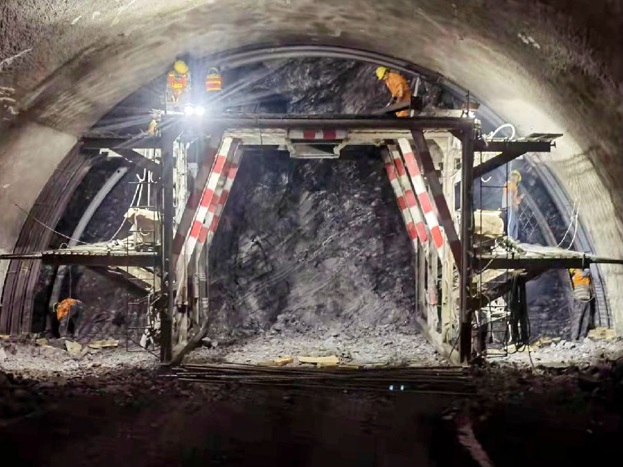 石家壩隧道位于涼山州會理市益門鎮(zhèn),是德會高速公路全線控制性工程之一,為低瓦斯長隧道,左洞長2135米,右洞長2150米。隧道進(jìn)口端坡度較陡且是松散泥石堆積體,進(jìn)洞難度大;圍巖巖體破碎、自穩(wěn)能力差、應(yīng)力釋放不均勻、富水量大,開挖過程中隨時(shí)都有突泥突水、瓦斯突出、圍巖遇水軟化坍塌等風(fēng)險(xiǎn)。面對便道施工難度大、運(yùn)輸條件差、施工組織難度大、安全風(fēng)險(xiǎn)管控大等困難,全體參建人員始終堅(jiān)持科學(xué)組織、規(guī)范施工,按照“嚴(yán)質(zhì)量、保安全、促進(jìn)度”總體要求,遵循“管超前、短進(jìn)尺、弱爆破、強(qiáng)支護(hù)、快封閉、勤量測”原則,有序推進(jìn)隧道施工建設(shè),為隧道雙幅貫通提供了有力保障。