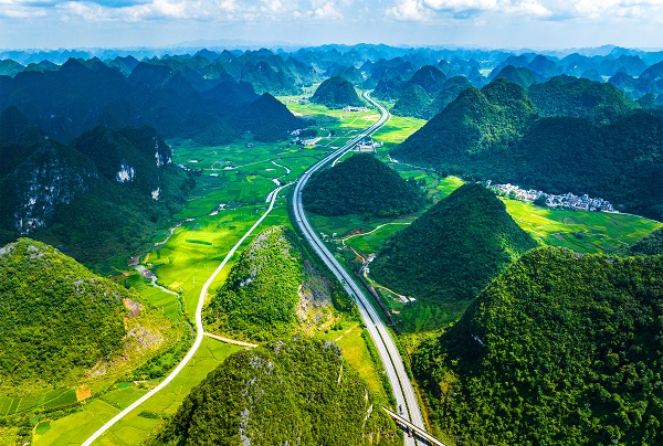 2022年12月,南丹至天峨下老高速公路建成通車,完成“縣縣通高速”的“最后一塊拼圖”,西部陸海新通道織線成網,拓寬了壯鄉“開放路”,拓展了“朋友圈”。