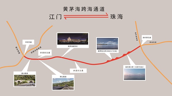 黃茅海跨海通道東連鶴港高速、高欄港高速,西連新臺(tái)高速、西部沿海高速