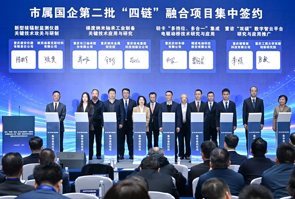 去年11月,重慶國資國企發布了首批105個“四鏈”融合項目,近半年來取得顯著成效,累計完成投資17.8億元,實現經濟效益19億元,發明專利84項。
