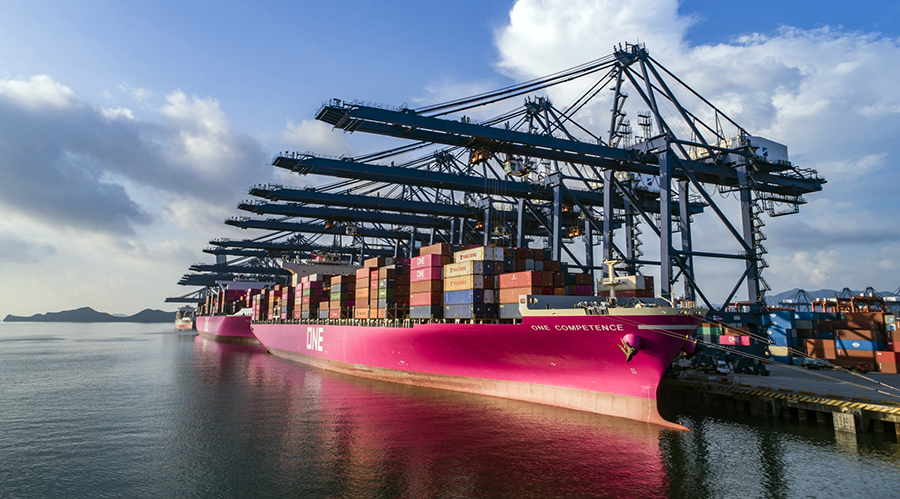 7月31日,鹽田港區(qū)迎來(lái)了日本海洋網(wǎng)聯(lián)船務(wù)“ONE MINATO(第一海港)”號(hào)首次掛靠。“第一海港”號(hào)長(zhǎng)366米,寬51.2米,屬于日本海洋網(wǎng)聯(lián)船務(wù)訂造的系列14000標(biāo)箱集裝箱船。紫紅色的“第一海港”號(hào)投入使用后,將成為其核心船舶之一。