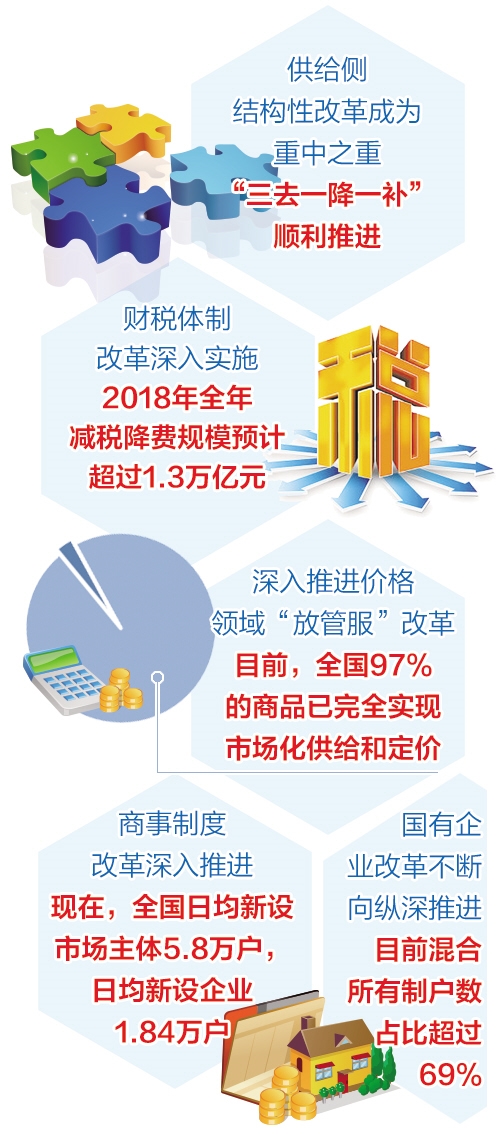 5年來,供給側結構性改革扎實推進,財稅金融改革深入實施,混合所有制改革、產權保護、激發和保護企業家精神“三改聯動”,開放型經濟新體制不斷完善……一項項改革相繼落地、持續加力,讓人民群眾有了更多實實在在的獲得感、幸福感和安全感。