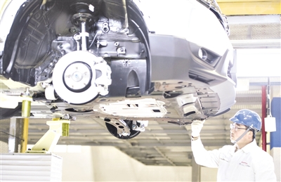 東風汽車的工人在車間作業。(記者 肖藝九 攝)