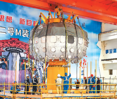 中國環(huán)流器二號M裝置真空室吊裝。范 晉攝