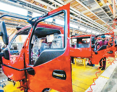 1月18日,在位于山東省青州市的一家汽車制造企業(yè),工人正在生產(chǎn)線上進行汽車裝配作業(yè)。