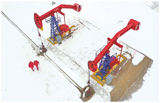 隴東黃土塬上,風(fēng)裹著雪。在南梁革命根據(jù)地所在的華池縣,長(zhǎng)慶油田隴東頁(yè)巖油項(xiàng)目部華H60平臺(tái)“鏖戰(zhàn)”正酣。工人們手持扳手,頭頂鵝毛飛雪,三人一組維修油井。