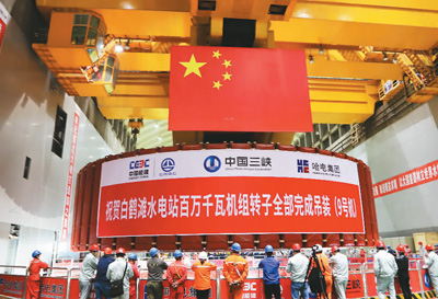 1月18日,白鶴灘水電站最后一臺百萬千瓦水電機組(9號)轉子吊裝就位,標志著電站16臺百萬千瓦水電機組轉子全部安裝完成。