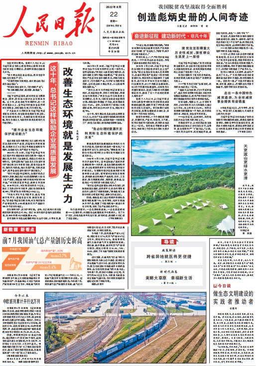 在習近平生態文明思想指引下,廣大企業加大科研投入、致力科技創新,開展生態保護和修復,實現自身的綠色發展、可持續發展,助力建設天藍、地綠、水清的美麗中國。