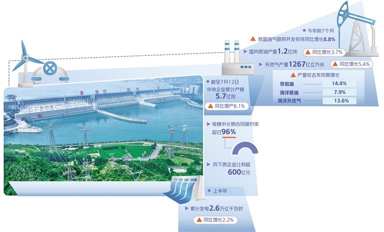 以煤為主是我國的基本能情,能源保供關鍵也在煤炭。數據顯示,中央煤炭企業全力增產增供增效,帶頭執行電煤中長期合同。截至7月12日,中央企業累計產煤5.7億噸,同比增產8.1%。電煤中長期合同履約率超過96%,向下游企業讓利超600億元。