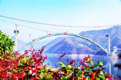 在建世界最大跨徑拱橋——廣西天峨龍灘特大橋。陽正球攝/光明圖片