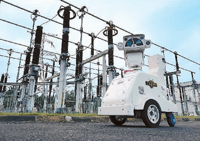 近期,國網樂山供電公司積極開展電網升級改造、精準治理設備隱患、加強設備巡視維護,筑牢夏季用電“安全墻”。圖為6月9日,一臺智能機器人在四川省樂山市220千伏范壩變電站進行日常巡視。