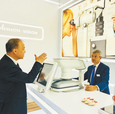 醫(yī)療器械及醫(yī)藥保健展區(qū),一家美國(guó)企業(yè)工作人員在介紹眼部檢測(cè)儀器。記者 黃 超攝