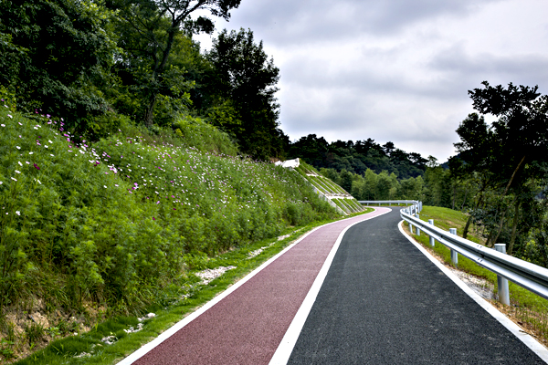 環(huán)繞獅子山鋪設(shè)的雙幅雙色透水瀝青路面