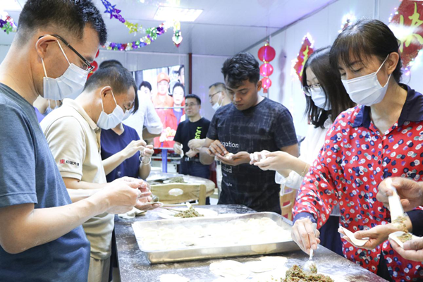 印尼米拉務(wù)公司的臘八粥、臘八蒜,立春的春餅,大年初一餃子、初二面條等琳瑯滿目的傳統(tǒng)節(jié)慶餐飲,應(yīng)著節(jié)氣“現(xiàn)身”在職工食堂,給所有中外籍員工帶來了一連串驚喜。中外籍員工的廚藝志愿者擼起袖子下廚房,輪番上陣、南北薈萃,中西結(jié)合,煎炒烹炸,一道道美味精彩紛呈,滿足了天南地北不同地區(qū)不國國籍員工的口味。人間煙火氣最撫游子心,來自印尼米拉務(wù)當(dāng)?shù)氐膯T工激動(dòng)地說:“在中國大唐工作有種強(qiáng)烈團(tuán)隊(duì)感和使命感,并且有機(jī)會(huì)讓我們看到了世界的豐富多彩,感謝中國企業(yè)給我們的幫助。”