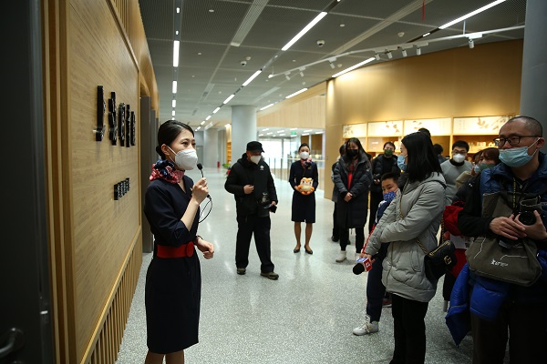 共覽“璞玉”看東館,化身場館導覽員。上海圖書館東館是坐落在上海浦東的“全媒體時代的智慧復合型圖書館”。其外觀猶如一塊璞玉,“漂浮”在城市森林之上,內部設計成一個開放的文化藝術空間。在場館導覽時,東航“凌燕”志愿者們全程帶領讀者遍歷東館建筑的打卡點,在營造安靜的閱讀文化氛圍的同時,傳遞志愿服務的溫暖,引導讀者全方位感受大閱讀時代下這座可閱讀的建筑演繹的文化之美。