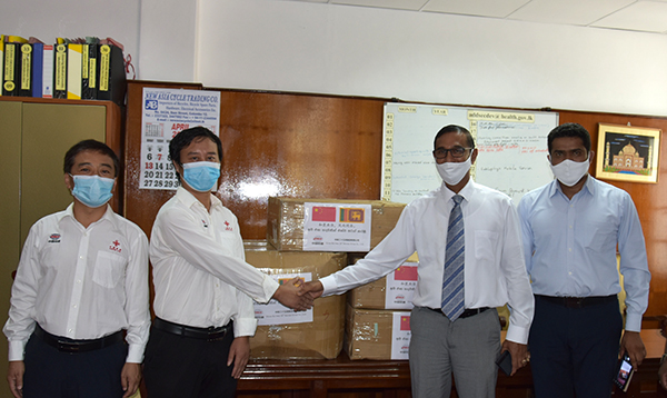 2020年4月6日下午,一批寫著“和衷共濟、風雨同舟”及當地僧伽羅語譯文標語的大箱子送到了斯里蘭卡衛生部輔秘昌德拉古伯塔的面前。“這是我們中鐵二十五局向斯里蘭卡衛生部無償援助的10000只一次性防護口罩,用以支援斯里蘭卡新型冠狀病毒疫情防控工作!”彭昌五說道。昌德拉古伯塔激動地握住項目負責人彭昌五的手說:“感謝中國!感謝中國鐵建!我們一定會和你們攜手挺過難關。”