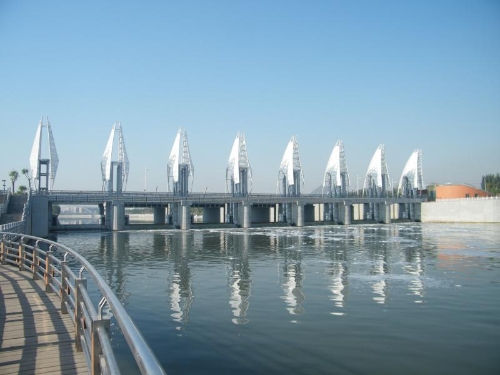 一渠清水,兩縱石堤,楊柳依依,洪園節(jié)制閘7對閘門如7對潔白羽翼,優(yōu)雅矗立在青天碧水之中,著實美不勝收。洪園節(jié)制閘還有個響當當的名頭——小清河上第一閘。作為濟南主城區(qū)唯一泄洪河道上最重要的一道控制性閘,它對市區(qū)防洪可以說起著決定性作用,更關乎著小清河上游千萬濟南市民的生命安全。“汛期泄洪保證濟南市汛期安全,非汛期在上游形成景觀水面。”這是洪園節(jié)制閘在規(guī)劃之初就被賦予的功能。