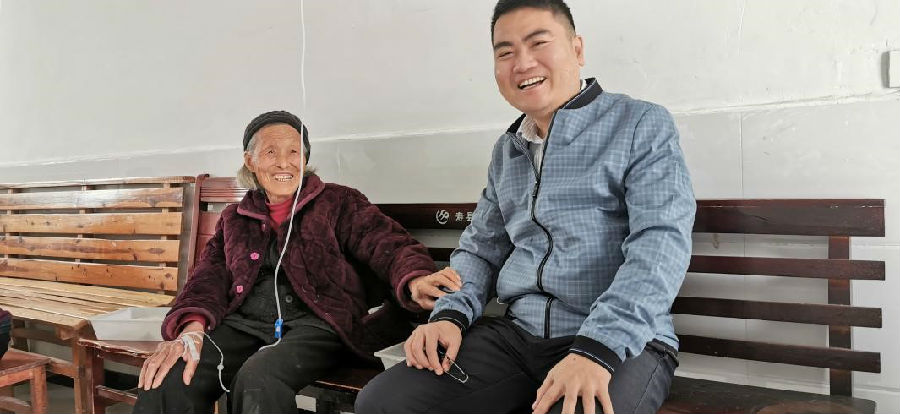 陶三寶在新修建的尚廟衛生室與村民大娘親切交談