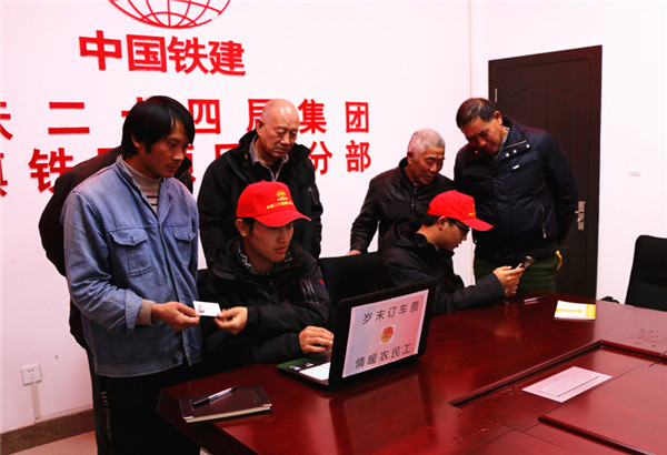 中鐵二十四局江蘇公司青年志愿者幫助農(nóng)民工兄弟購(gòu)買春節(jié)返鄉(xiāng)車票