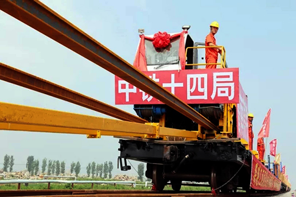 在沿線百姓的全力支持下,中鐵十四局五公司進場38天便完成了全線首片箱梁的預制,98天梁場認證完畢,118天全線首片箱梁成功架設,開工一年半實現(xiàn)鋪軌,不斷刷新著高鐵建設紀錄。