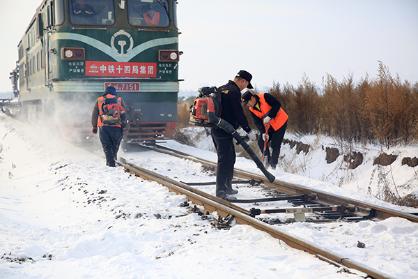 “干完活我們才發現手、腳、耳朵都凍得又紅又腫,回到宿舍,一熱乎又癢得難受。”劉洋說,這是半個月以來下的第三場雪,也是最大的一場雪,但他們還是趕在積雪上凍前完成了188.76公里線路上7處站點的道岔清掃,沒有因暴雪影響一列施工物資的運輸。
