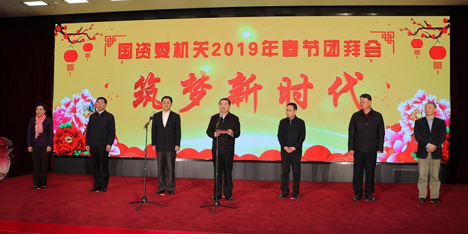 2月1日,國資委機關(guān)舉辦2019年新春團(tuán)拜會。國資委黨委書記郝鵬出席團(tuán)拜會并致辭,代表國資委黨委向委機關(guān)、直屬單位、直管協(xié)會廣大干部職工及家屬致以節(jié)日問候和新春祝福。國資委黨委委員,秘書長、總會計師出席團(tuán)拜會。