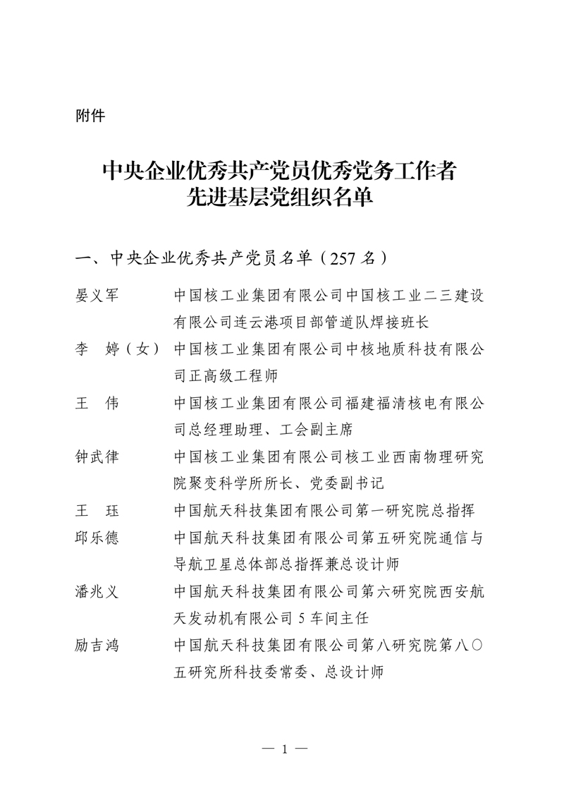 今年是中國共產(chǎn)黨成立103周年,是中華人民共和國成立75周年,是實(shí)現(xiàn)“十四五”規(guī)劃目標(biāo)任務(wù)的關(guān)鍵一年。為表彰先進(jìn)、弘揚(yáng)正氣,激勵(lì)中央企業(yè)各級(jí)黨組織和廣大共產(chǎn)黨員在全面推動(dòng)國資央企高質(zhì)量發(fā)展的新征程中創(chuàng)先爭優(yōu)、建功立業(yè),國務(wù)院國資委黨委決定,授予晏義軍等257名共產(chǎn)黨員“中央企業(yè)優(yōu)秀共產(chǎn)黨員”稱號(hào),授予劉維平等132名黨務(wù)工作者“中央企業(yè)優(yōu)秀黨務(wù)工作者”稱號(hào),授予中國核工業(yè)集團(tuán)有限公司中核霞浦核電有限公司黨委等201個(gè)基層黨組織“中央企業(yè)先進(jìn)基層黨組織”稱號(hào)。
