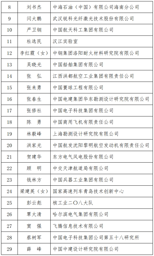 為表彰工程技術領域先進典型,黨中央、國務院決定開展“國家工程師獎”首次評選表彰,授予81名個人“國家卓越工程師”稱號、50個團隊“國家卓越工程師團隊”稱號。