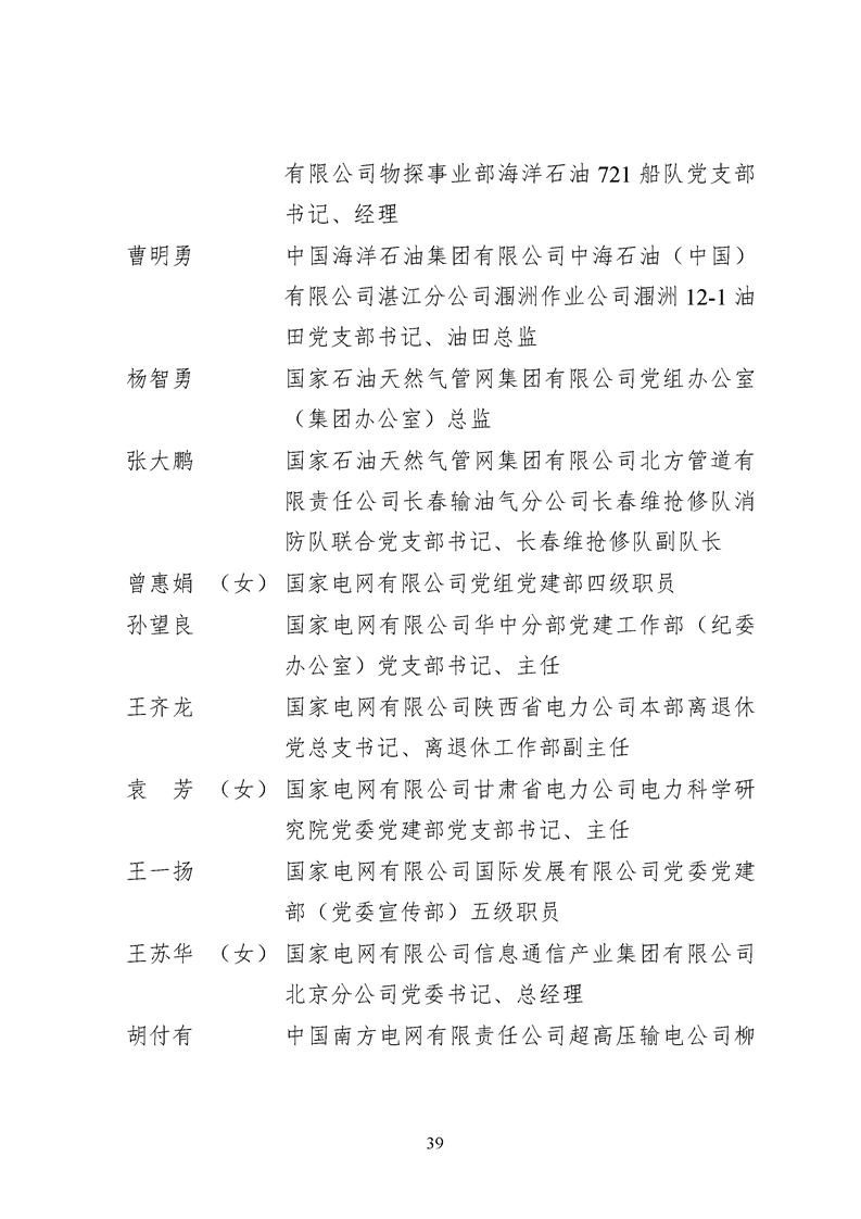 為表彰先進、弘揚正氣,激勵各級黨組織和廣大共產黨員在把握新發展階段、貫徹新發展理念、構建新發展格局中奮發有為、建功立業,國資委黨委決定,授予邢繼等338名共產黨員“中央企業優秀共產黨員”稱號(含追授2名),授予王軍艷等205名黨務工作者“中央企業優秀黨務工作者”稱號,授予中國核工業集團有限公司福建福清核電有限公司黨委等448個基層黨組織“中央企業先進基層黨組織”稱號。這次表彰的優秀個人和先進集體是中央企業各條戰線上的杰出代表,他們的先進事跡和崇高精神充分展示了新時代共產黨人的先進性和純潔性,生動詮釋了中央企業共產黨員的初心和使命,彰顯了國有企業先進精神的無窮偉力。