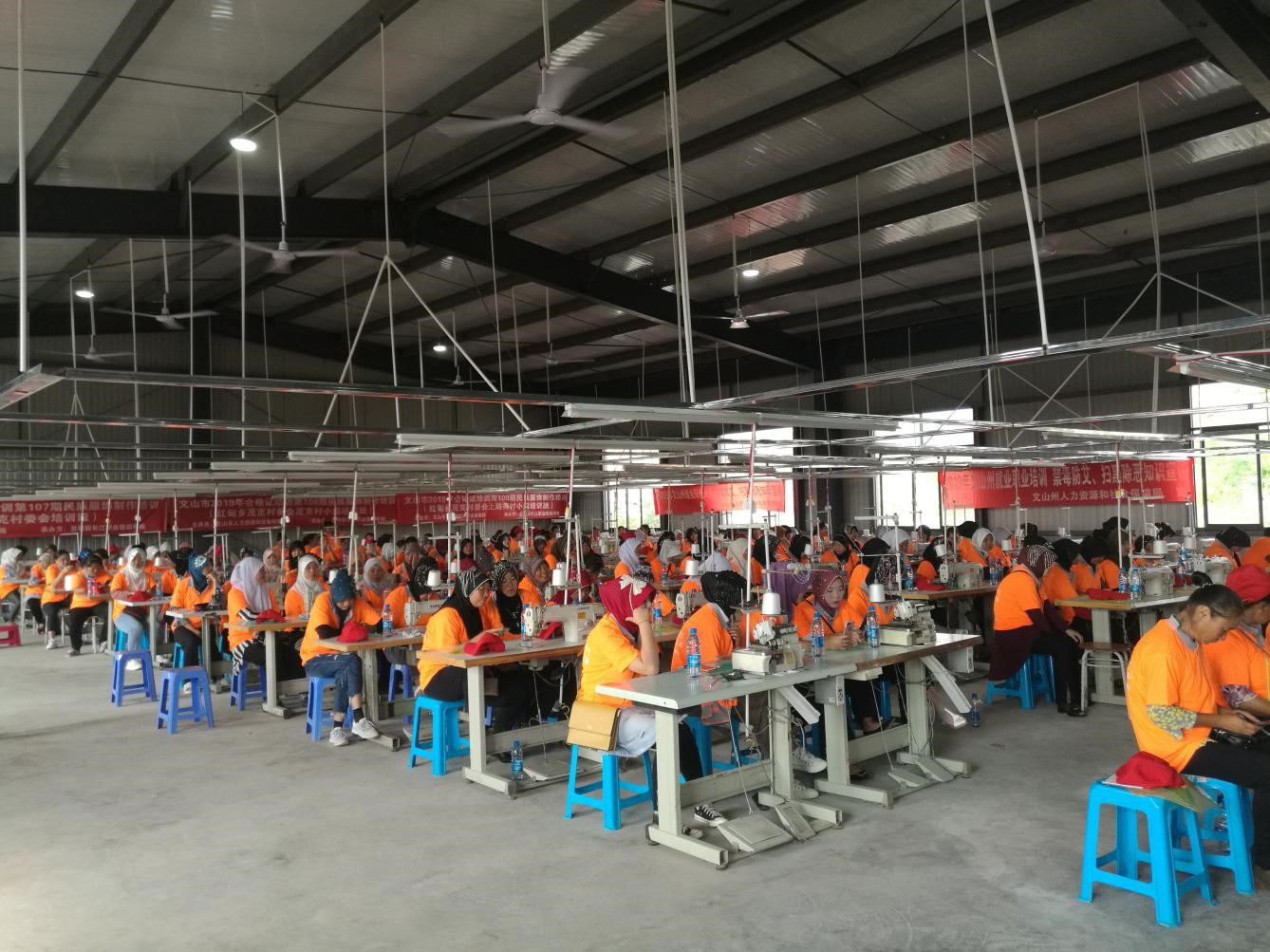 中國石化在新疆柯坪縣引進的興科服飾公司項目生產車間