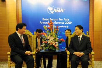4月18日,國務院國資委主任李榮融在海南博鰲亞洲論壇2009年年會期間會見了芬蘭總理萬哈寧,并與其共同出席了由諾基亞西門子通信公司與中國移動海南分公司聯合舉辦的TD-SCDMA第三代移動通信展示會。此外,李榮融還分別會見了韓國SK集團會長崔泰源先生和德勤全球CEO奎勵杰先生,就當前全球經濟形勢以及企業如何應對金融危機等問題與對方交換了意見。