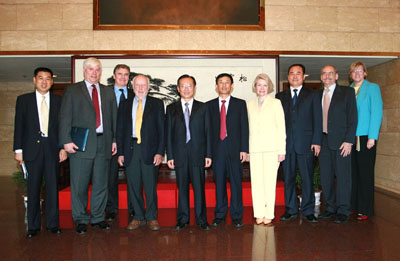 7月10日上午,國務院國資委副主任黃淑和在國資委會見了世界大型企業聯合會中國經濟與企業研究中心顧問委員會成員、1993年諾貝爾經濟學獎獲得者之一、美國華盛頓大學教授道格拉斯·諾斯教授一行。黃淑和介紹了國資委成立以來開展的主要工作和中央企業取得的主要成績,回顧了中國20多年國有企業改革的歷史,指出將外國經驗和本國實際情況緊密結合是中國國有企業改革取得成績的關鍵。諾斯教授對國資委和中央企業在短時間內取得如此成就表示欽佩,對中國把外國經驗和本國國情結合起來的作法表示贊賞。雙方還就其他共同關心的問題交換了意見。