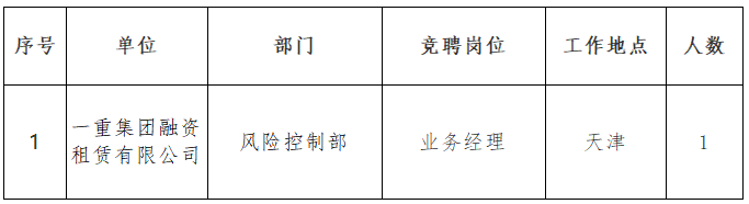 鑒于一重集團(tuán)融資租賃有限公司經(jīng)營發(fā)展的需要,公司決定,面向社會(huì)(集團(tuán)公司內(nèi)部員工除外)公開招聘風(fēng)控崗位人員,相關(guān)內(nèi)容如下: