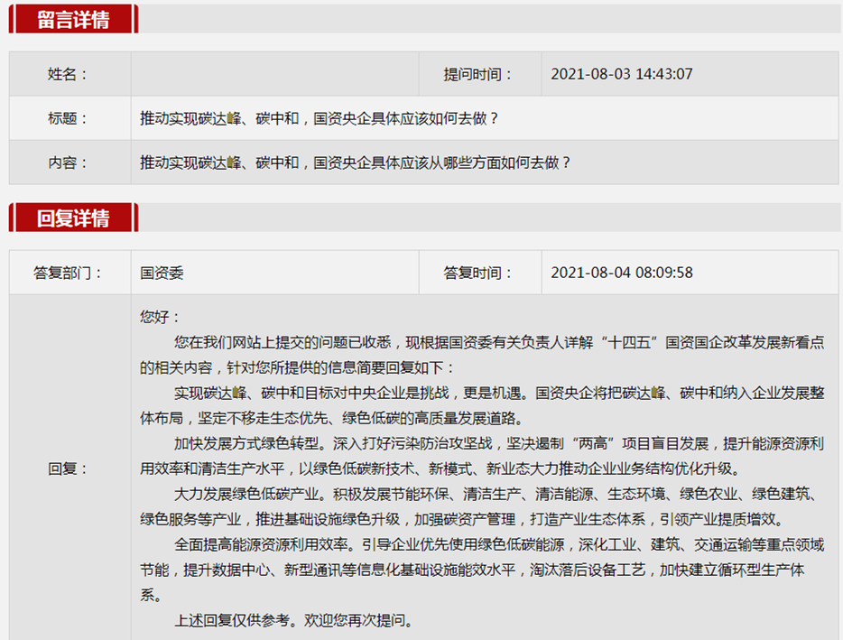 2021年8月國資委網站政務咨詢欄目部分網友提出的咨詢,我們初步做出了認真的回應,現選擇五條關注度高、點擊量高的問題,再次推薦分享。