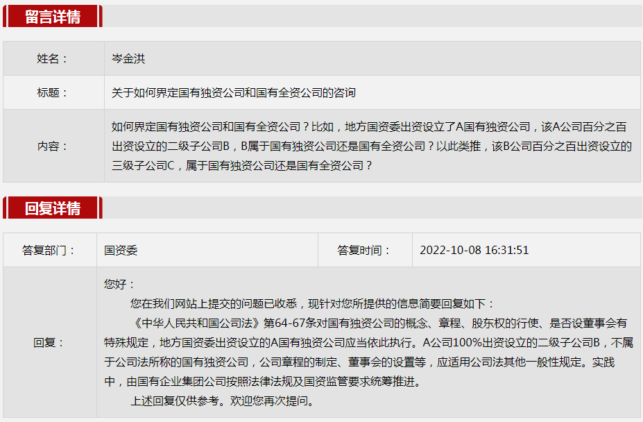 2.關于如何界定國有獨資公司和國有全資公司的咨詢。