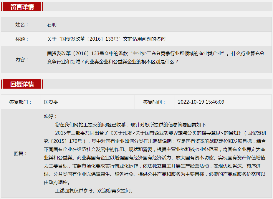 4.關于“國資發(fā)改革〔2016〕133號”文的適用問題的咨詢。