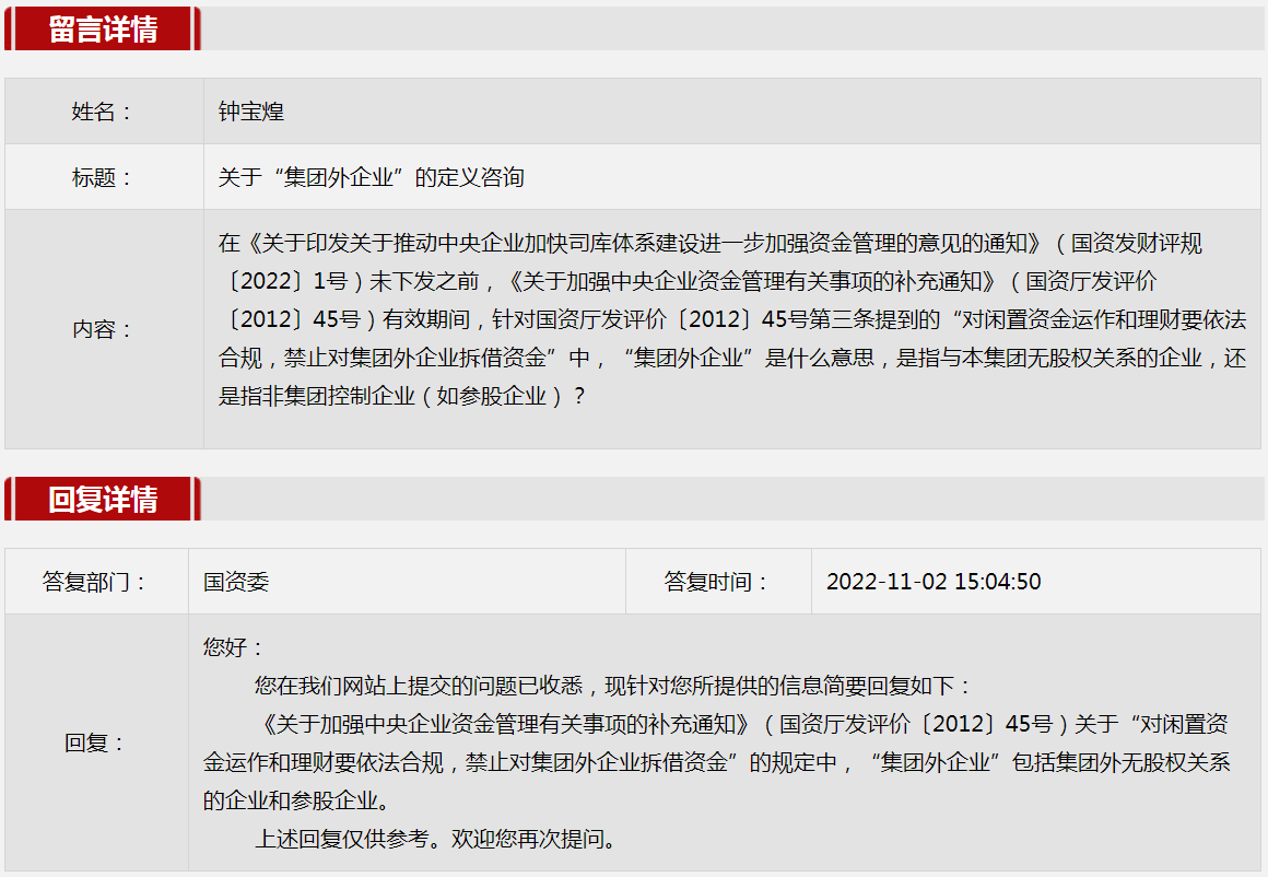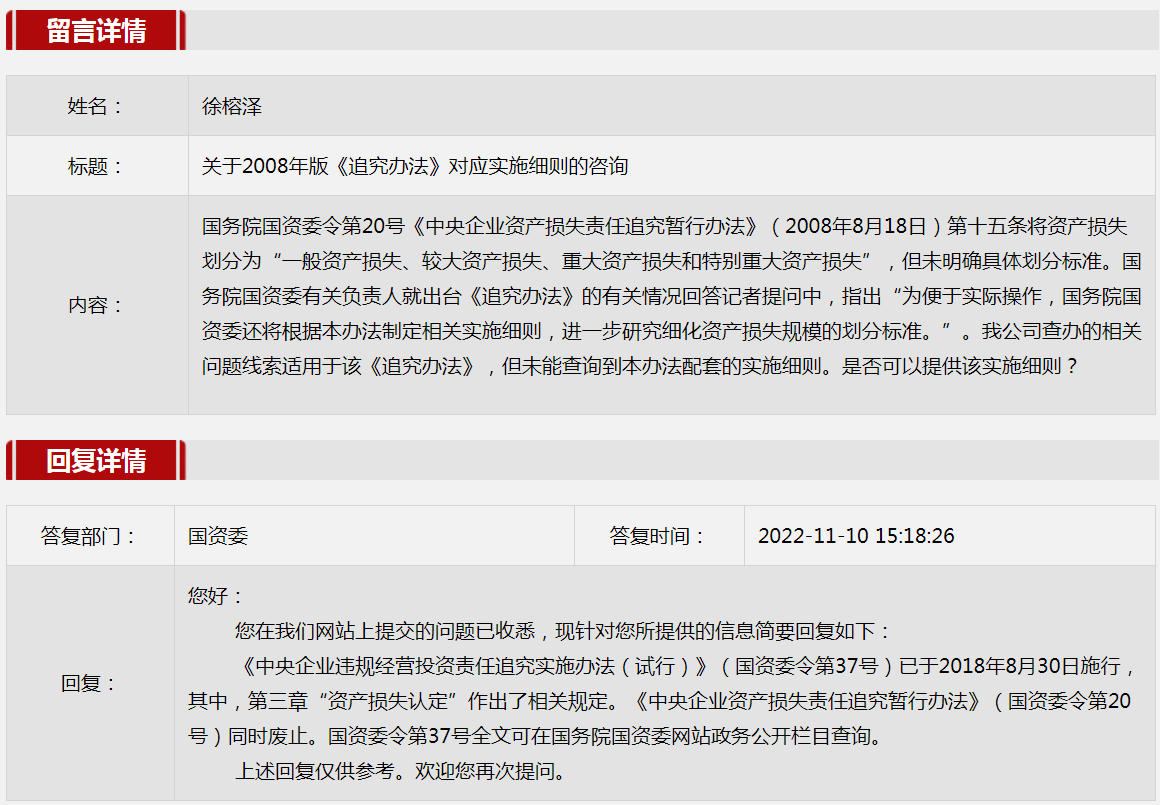 2022年11月國(guó)資委網(wǎng)站政務(wù)咨詢欄目部分網(wǎng)友提出的咨詢,我們初步做出了認(rèn)真的回應(yīng),現(xiàn)選擇五條關(guān)注度高、點(diǎn)擊量高的問(wèn)題,再次推薦分享。