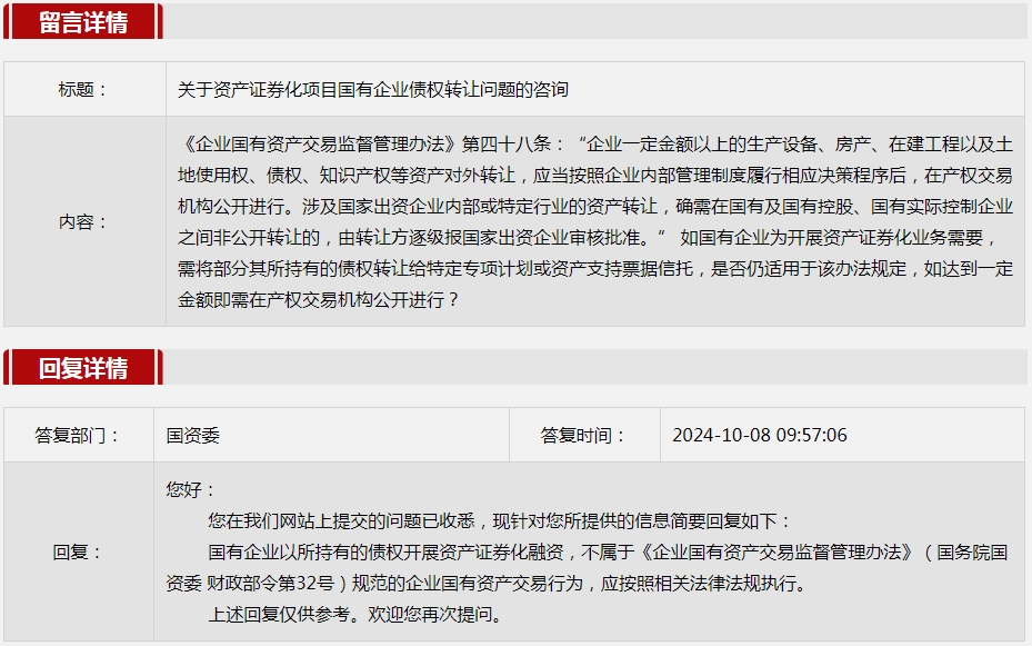 1.關(guān)于資產(chǎn)證券化項(xiàng)目國(guó)有企業(yè)債權(quán)轉(zhuǎn)讓問(wèn)題的咨詢