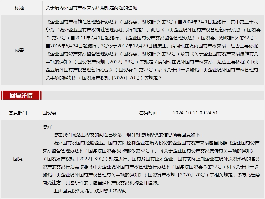 4.關(guān)于境內(nèi)外國(guó)有產(chǎn)權(quán)交易適用規(guī)定問(wèn)題的咨詢