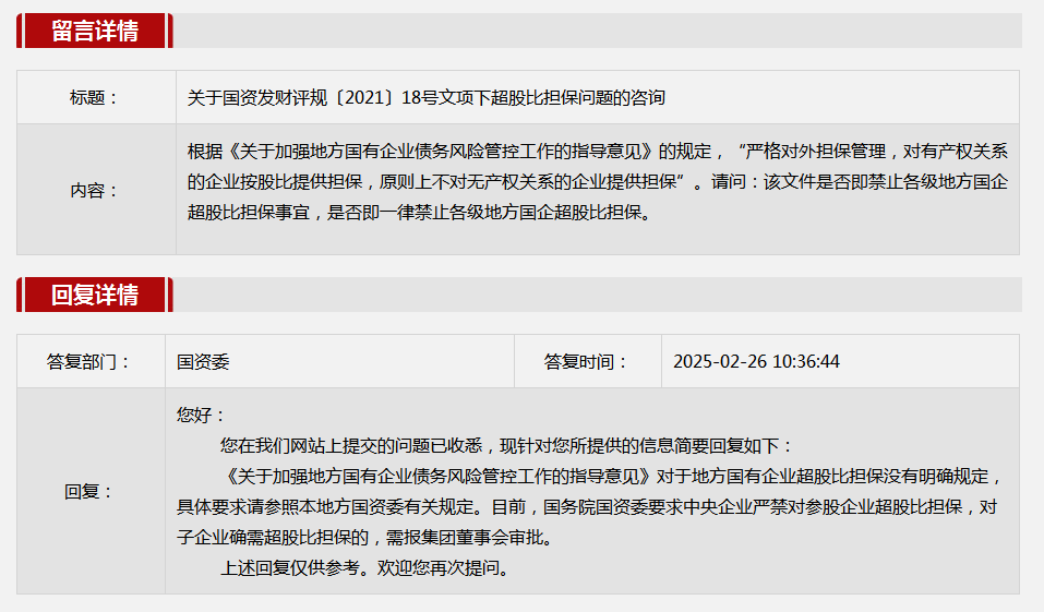 5.關于國資發財評規〔2021〕18號文項下超股比擔保問題的咨詢