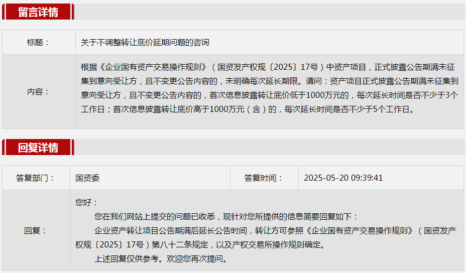 3.關于不調整轉讓底價延期問題的咨詢
