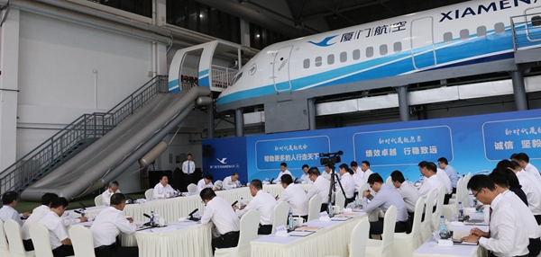 廈門航空是習(xí)近平總書記在福建工作期間親自推動組建的國內(nèi)第一家中央企業(yè)與地方國有企業(yè)合資經(jīng)營的航空公司,35年來創(chuàng)造了輝煌業(yè)績,成為國有企業(yè)改革發(fā)展的典范。郝鵬來到廈航,參觀了企業(yè)“初心之路”展,認(rèn)真聽取了企業(yè)改革發(fā)展情況介紹。郝鵬指出,廈航的成長歷程是中國民航業(yè)發(fā)展的縮影,也是國有企業(yè)做強(qiáng)做優(yōu)發(fā)展壯大的縮影,新時代廈航這只“白鷺”一定會飛得更快更高。要以主題教育為契機(jī),結(jié)合企業(yè)多年來沿著習(xí)近平總書記指引方向深化改革、加快發(fā)展的實踐探索,推動學(xué)習(xí)貫徹習(xí)近平新時代中國特色社會主義思想走深走實,不斷強(qiáng)化干事創(chuàng)業(yè)擔(dān)當(dāng),加快破解改革發(fā)展難題;以安全第一為準(zhǔn)繩,堅決守住航空運(yùn)輸企業(yè)生存發(fā)展底線;以爭創(chuàng)一流為目標(biāo),在戰(zhàn)略引領(lǐng)、管理提升、品牌建設(shè)、市場開拓、風(fēng)險防控等方面下更大功夫,推動高質(zhì)量發(fā)展邁出新步伐;以提高活力效率為中心,秉承“愛拼才會贏”精神,持續(xù)深化改革創(chuàng)新,為企業(yè)發(fā)展增添新活力;推動黨的建設(shè)與生產(chǎn)經(jīng)營深度融合,以高質(zhì)量黨建引領(lǐng)高質(zhì)量發(fā)展。