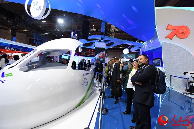 11月6日,外國觀眾正在參觀未來電氣化飛機虛擬集成平臺。(人民網記者 翁奇羽 攝)