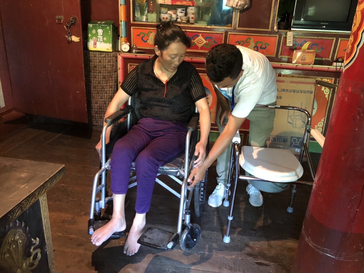四郎多吉在村里用廣播宣傳國(guó)家對(duì)農(nóng)村的各項(xiàng)優(yōu)惠政策,當(dāng)了解到該村日巴組有一戶貧困戶居住于山上,因?yàn)樯眢w殘疾無法下床走動(dòng),基本生活都成問題。第二天四郎多吉就走進(jìn)貧困戶家中了解情況,當(dāng)即利用現(xiàn)有政策打電話幫她申請(qǐng)到了一個(gè)輪椅,還親自幫忙取回來。因?yàn)殚_車不能到達(dá),他只好大熱天背著輪椅上山,親自送到對(duì)方手中。對(duì)方看到他一身大汗淋漓,感動(dòng)得豎起了大拇指,眼里泛著淚水“澤仁,卡卓(謝謝之意)”。可是緊接著問題又來了,那家的院壩坑坑洼洼輪椅無法正常使用,四郎多吉于是又求人幫她修院壩,才鋪就了舒心路。