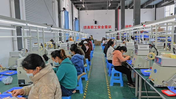 聚緣村是梁河縣農戶來源最廣泛、建檔立卡戶占比最高的易地搬遷新村,安置了全縣9個鄉鎮易地搬遷群眾190戶768人,建檔立卡戶占比73%。“樂業才能安居,解決好就業問題,才能確保搬遷群眾穩得住、逐步能致富,防止返貧。”為擴展聚緣村搬遷群眾的收入來源,中國有色集團投資265萬元幫扶扶貧車間一座,引入電子器件裝配加工企業和農業公司,投入資金對車間脫貧員工進行上崗培訓,實現了搬遷勞動力家門口就業。